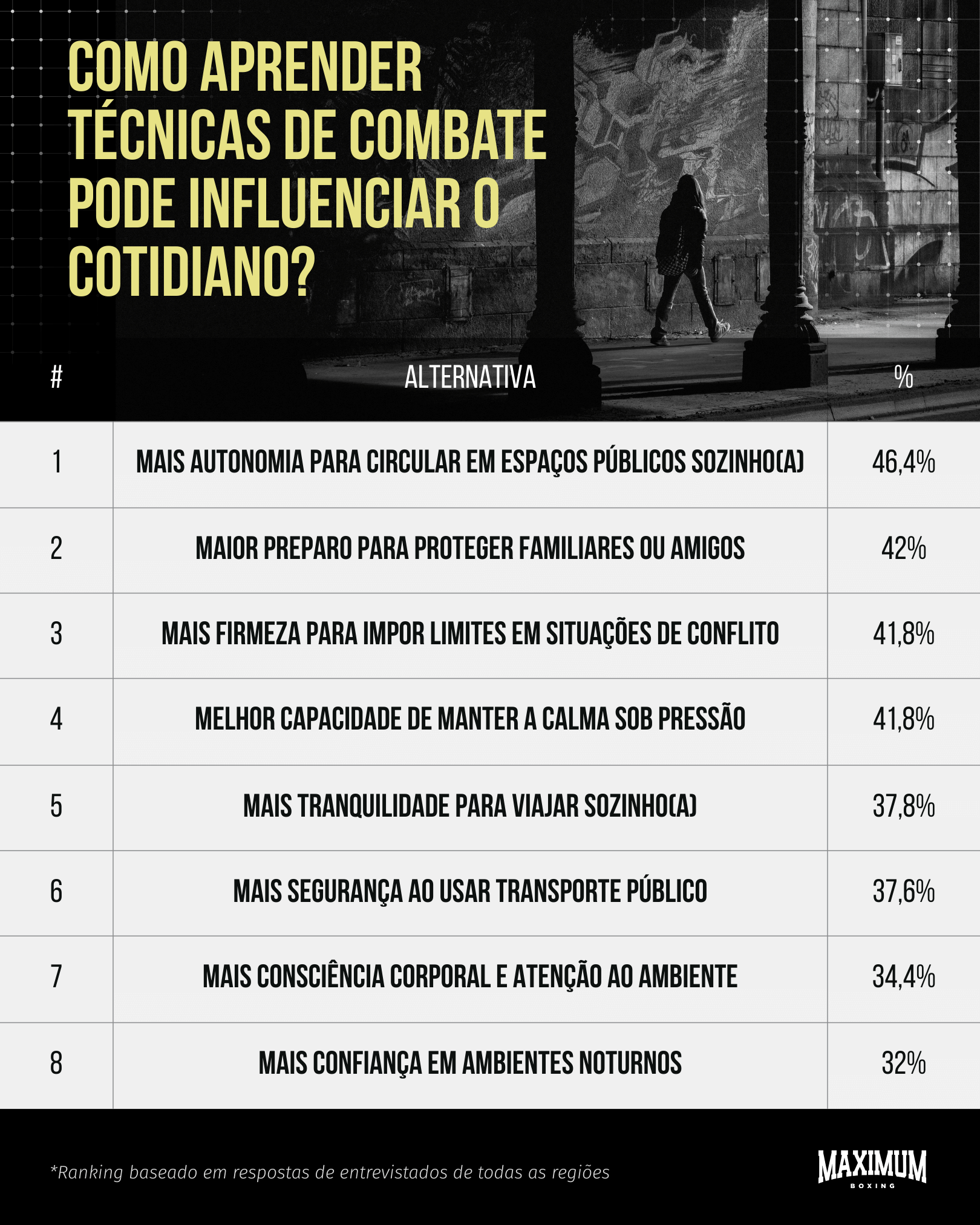 - Aprender técnicas de defesa pessoal (52,8%)